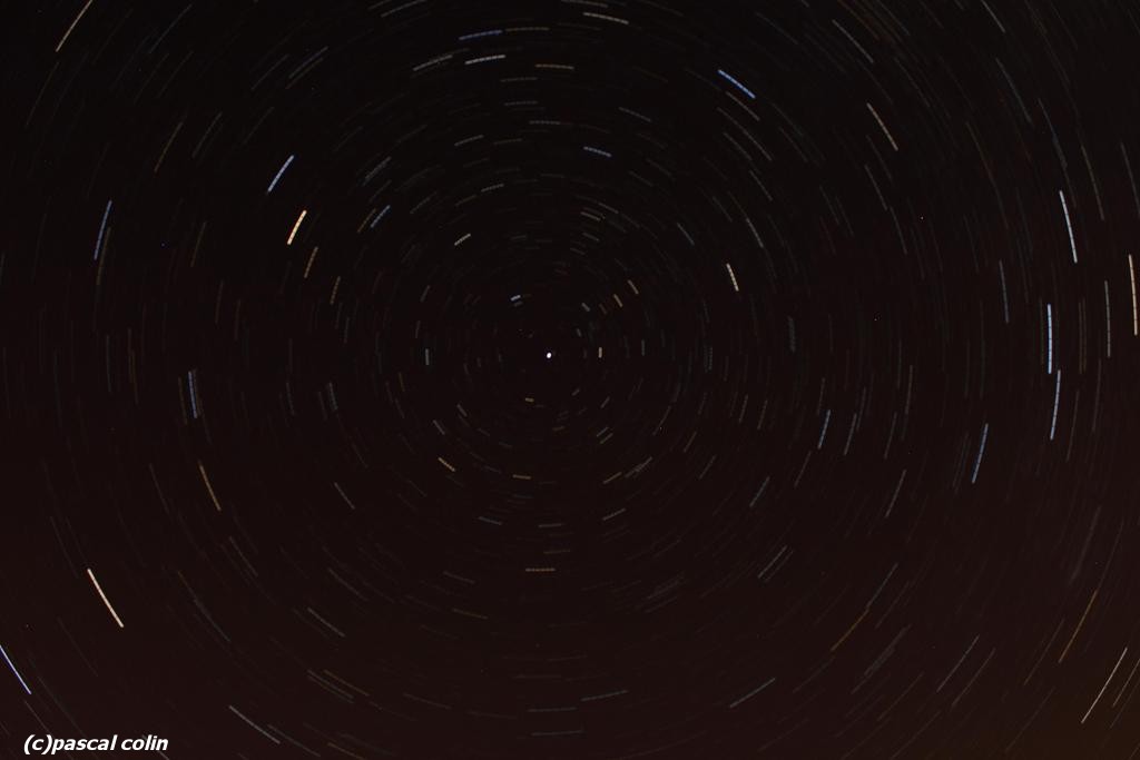 Le ciel tourne, ou nous tournons, pour s'en rendre compte il suffit de laisser un appareil photo ouvert plusieurs minutes - ici 5 fois 5mn - et ainsi découvrir la course des étoiles.